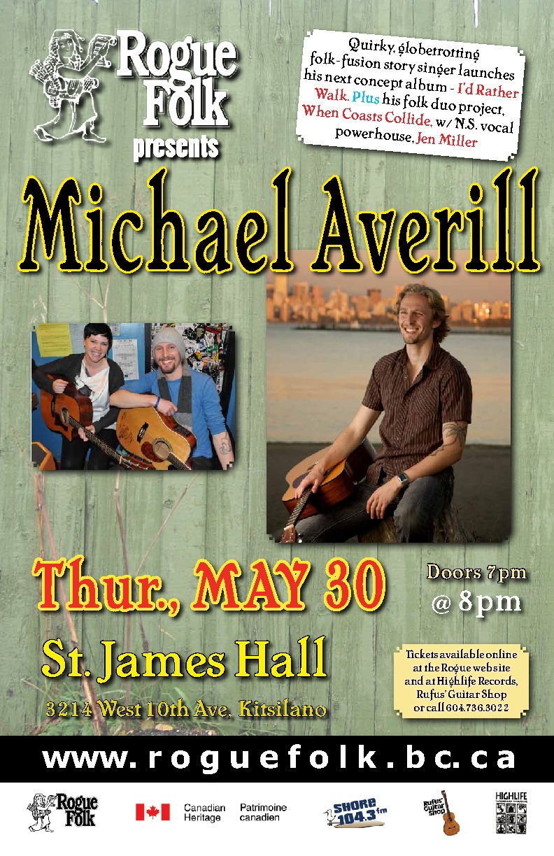 Canadian Walking Tour Album Release: Michael Averill @ St. James Community Hall May 30 2013 - Dec 22nd @ St. James Community Hall