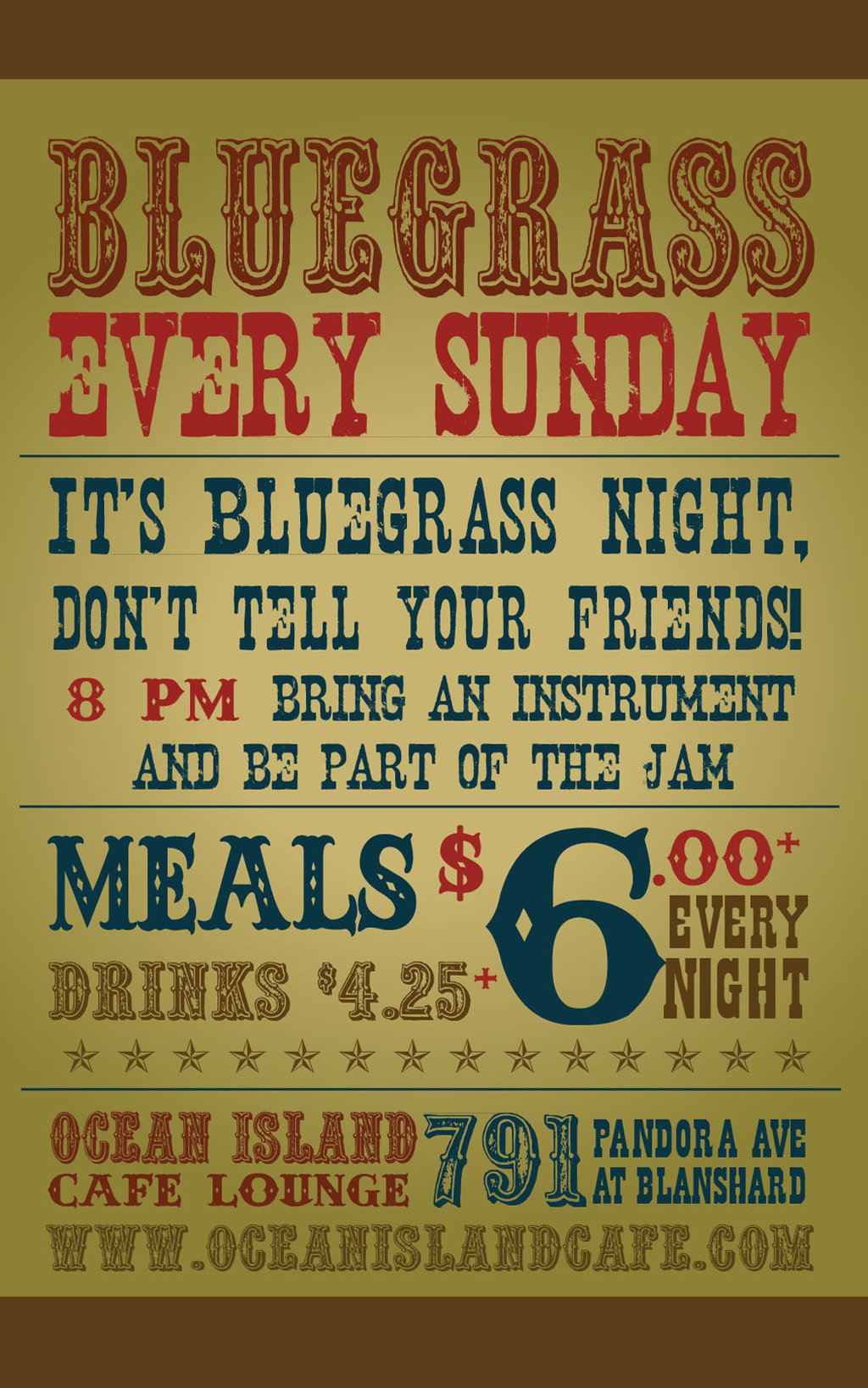 Bluegrass Jamboree! @ Ocean Island Lounge May 19 2013 - Jan 12th @ Ocean Island Lounge