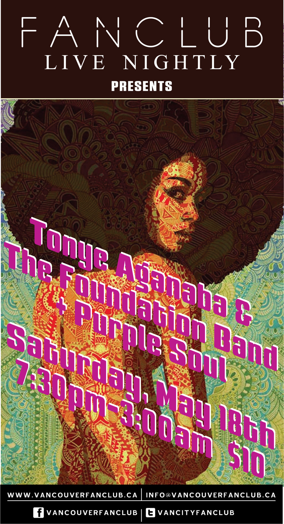 Get ready to celebrate the long weekend with some seriously funky musicians in our city! Serving up soulful melodies, funky beats and high energy reggae vibes...this line up is killer! Purple Soul is a new reggae, funk and soul cover band from Vancouver. Tonye is a powerhouse of silky soulful talent in Vancouver! She delivers a high energy show with the feel of Lauren Hill, Erykah Badu, and Sade with her all original content. Her funky band The Foundation is made up of some seriously tight musicianship, funky styles and a danceable beat to keep the dance floor packed to the wee hours!!