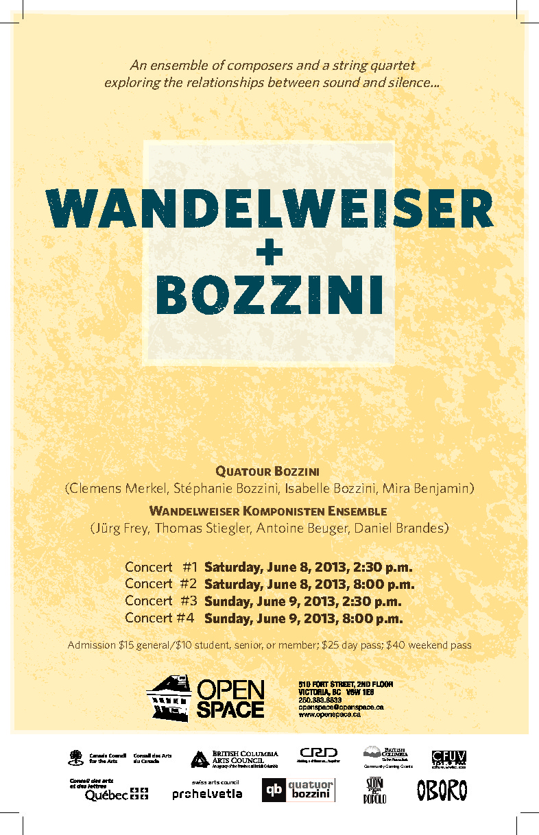 Wandelweiser + Bozzini: Jürg Frey, Antoine Beuger., Quatuor Bozzini, Wandelweiser Komponisten Ensemble @ Open Space Jun 8 2013 - Feb 5th @ Open Space