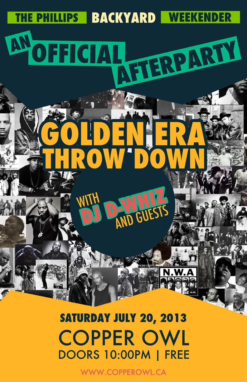Come by the Copper Owl after The Phillips Backyard Weekender on Saturday, July 20th and hear your favourite golden era hip hop tracks - strictly goods - ranging from the late '80s to early '90s.
