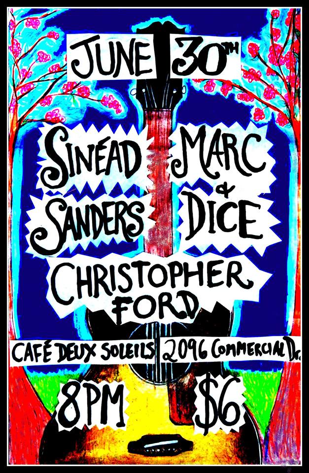 A fine Sunday evening of fine local folk rock (& roll!): Sinéad Sanders, Marc & Dice, Christopher Ford @ Cafe deux Soleils Jun 30 2013 - Feb 7th @ Cafe deux Soleils