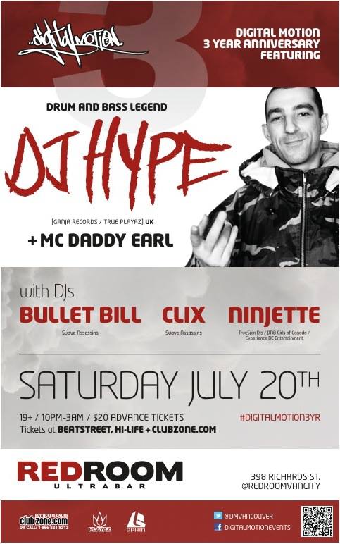 #DIGITALMOTION3YR ANNIVERSARY W/ DnB LEGEND:  DJ HYPE ,  MC DADDY EARL @ The Red Room Jul 20 2013 - Nov 7th @ The Red Room