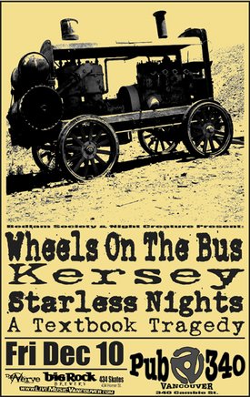 Wheels On the Bus, Kersey, Starless Nights, A Texbook Tragedy @ Pub 340 Dec 10 2004 - Feb 5th @ Pub 340