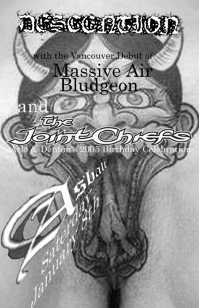ARLO AND DENTORS BIRTHDAY BASH: Descention, The Joint Chiefs, MASSIVE AIR BLUDGEON @ The Astoria  Jan 8 2005 - Feb 6th @ The Astoria