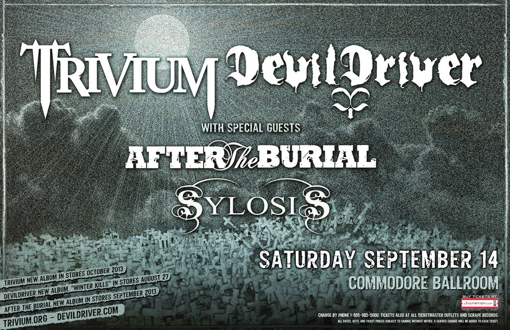 Trivium (11:05), Devildriver (9:40), After the Burial (8:45), Sylosis @ The Commodore Ballroom Sep 14 2013 - Feb 6th @ The Commodore Ballroom