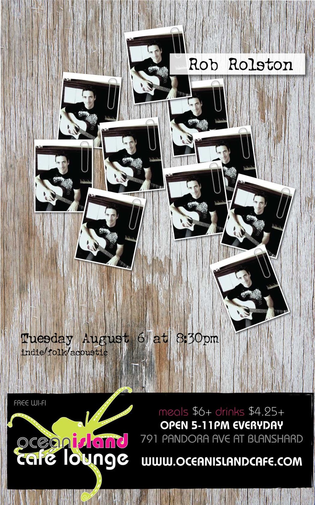 Rob Rolston is a singer/songwriter who has just re-located to Victoria. He has played in bands all over western Canada but has struck out on his own as a solo act. In addition to playing original music, he covers a mix of songs from alternative bands such as Pearl Jam, Sublime, Bedouin Soundclash and Fuel to mainstream pop hits from Jason Mraz and One Republic to classics such as the Tragically Hip, Cat Stevens and John Cougar... and many more.