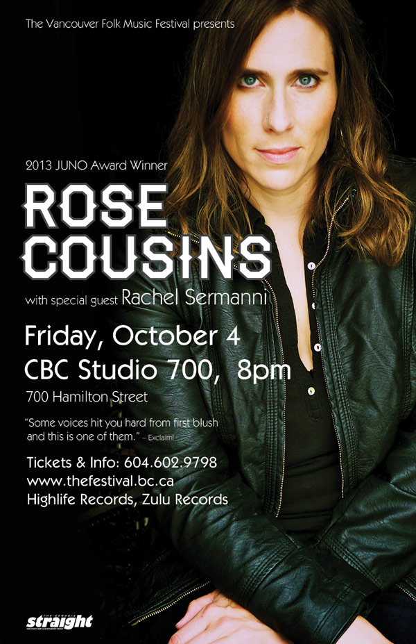 Juno Award winning singer-songwriter, Rose Cousins, will be bringing songs from her acclaimed record, We Have Made A Spark, to the intimate setting of CBC’s Studio 700. Scottish folk musician, Rachel Sermanni, will be joining Cousins on her cross-country tour.