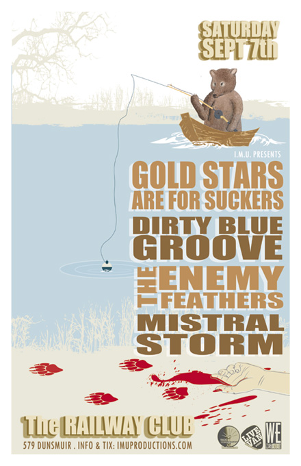 . Saturday, September 7th IMU presents DIRTY BLUE GROOVE, GOLD STARS ARE FOR SUCKERS, The ENEMY FEATHERS & MISTRAL STORM @ The Railway Club, 579 Dunsmuir . Show 10pm / $10 cover at the door or purchase advance tickets online @ http://www.imuproductions.com/tix