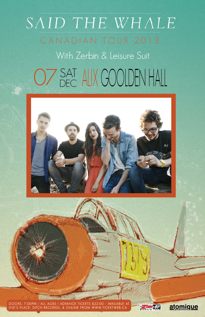 Said the Whale, Zerbin, Leisure Suit @ Alix Goolden Performance Hall Dec 7 2013 - Feb 8th @ Alix Goolden Performance Hall