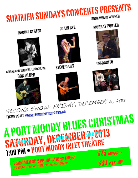 A Port Moody Blues Christmas: Don Alder, Murray Porter, Incognito, Steve Daily, Joani Bye, Nadine States @ Inlet Theatre Dec 6 2013 - Feb 8th @ Inlet Theatre