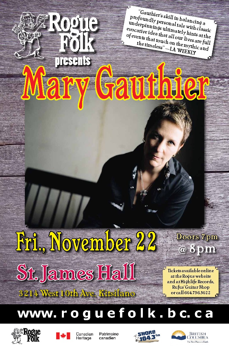 Mary Gauthier @ St. James Community Hall Nov 22 2013 - Dec 21st @ St. James Community Hall