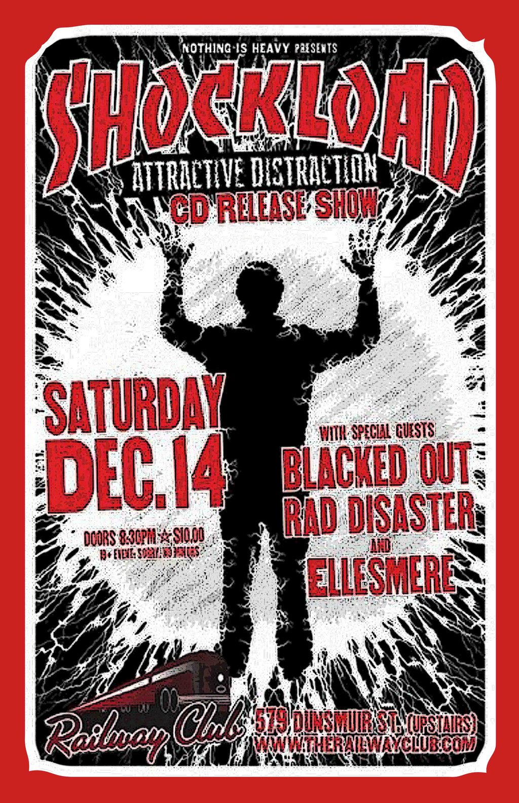 Shockload, Blacked Out, Rad Disaster, Ellesmere @ Railway Club Dec 14 2013 - Feb 8th @ Railway Club
