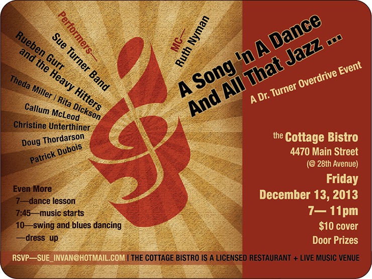 Sue Turner Band, Rueben Gurr, Theda Phoenix @ Cottage Bistro Dec 13 2013 - Feb 5th @ Cottage Bistro
