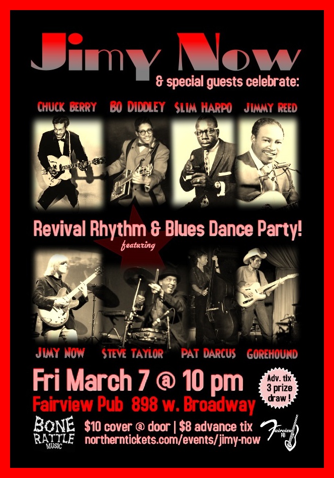JIMY NOW and his band celebrate the music of Jimmy Reed, Chuck Berry, Bo Diddley, and Slim Harpo for a whole night of rockin' rhythm & blues...