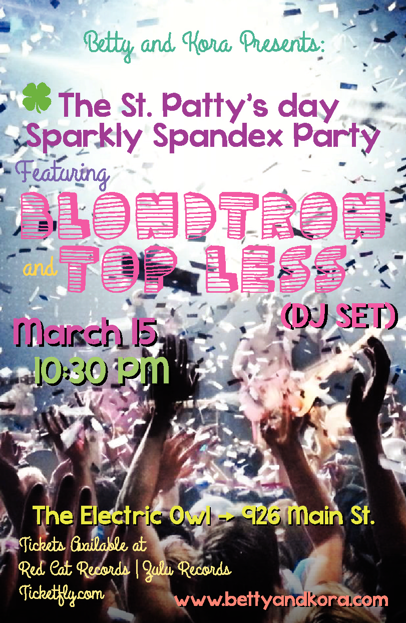 The St. Patty's Day Sparkly Spandex Party: Blondetron, Topless DJ set @ Electric Owl Mar 15 2014 - Dec 22nd @ Electric Owl