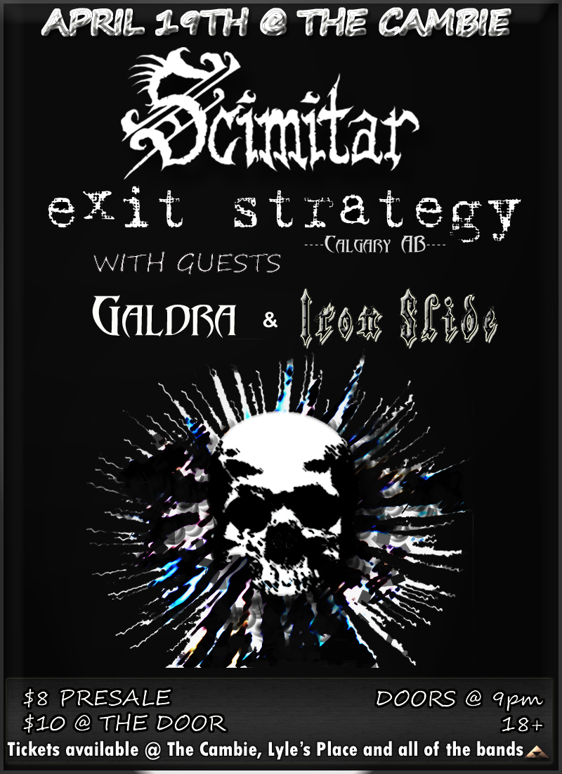 Featuring: SCIMITAR, EXIT STRATEGY (Calgary), GALDRA & IRON SLIDE