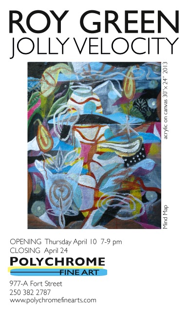 Roy Green was born in the Year of the Dog in Lethbridge, Alberta. He is a painter, poet and performance artist based in Victoria. As a self-taught painter Green likens his work to channel-surfing with a paintbrush, incorporating found objects, symbols and text, chance and coincidence, spontaneity and improvisation into a form of urban folk-art.