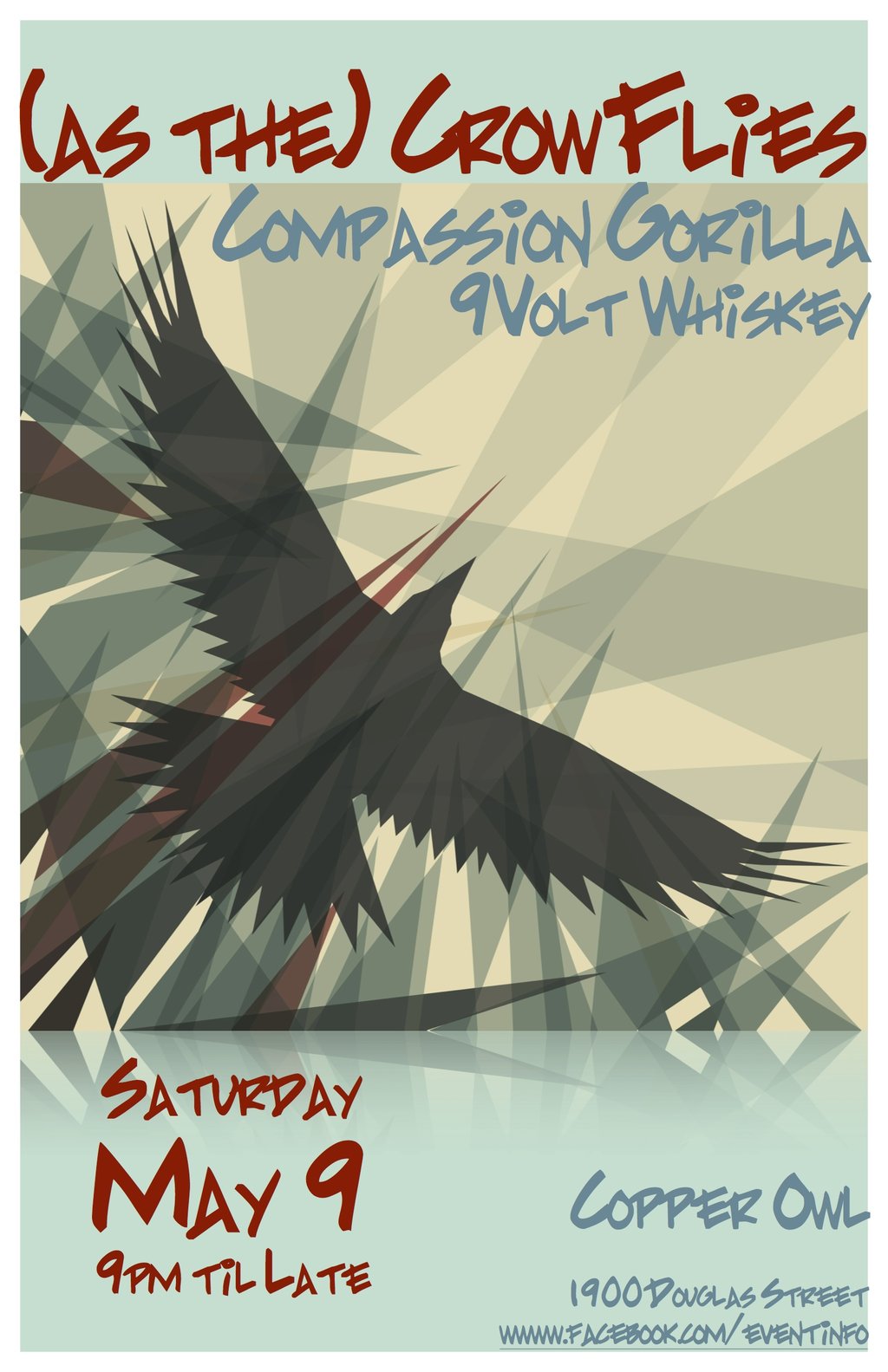 It has been quite some time now since (as the) Crow Flies and Compassion Gorilla shared a bill together, but when it has happened in the past it has been memorable for members of the bands and the audience. Both bands summon an energetic and enthusiastic dance floor and enjoy (and perform) similar, rhythmic and varied musical styles and flavours. Come on out for a great night of music kicked off by surf rockers 9v Whisky!