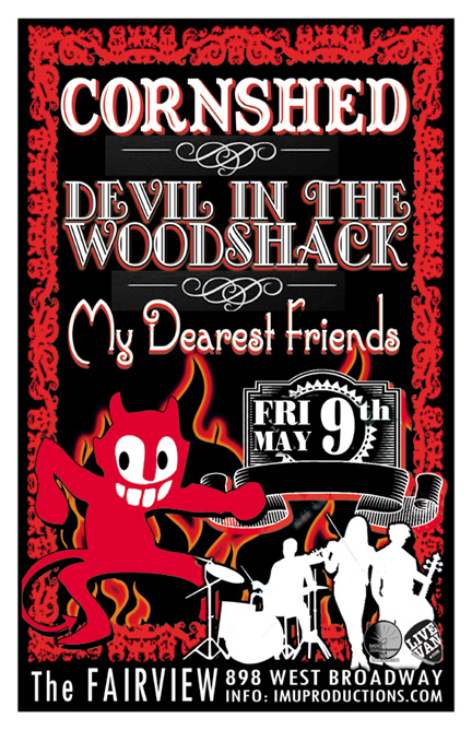 . Friday, May 9th IMU presents CORNSHED, DEVIL IN THE WOOD SHACK & MY DEAREST FRIENDS @ The Fairview, 898 West Broadway . Show 10pm / Cover $10