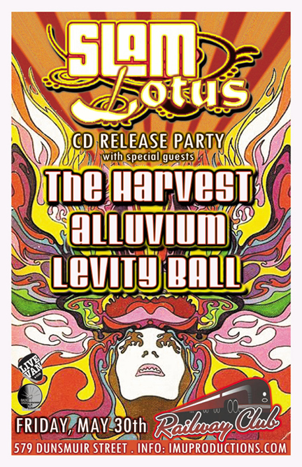 . Friday, May 30th IMU presents SLAM LOTUS CD Release Party w/ The HARVEST, ALLUVIUM & LEVITY BALL @ The Railway Club, 579 Dunsmuir . Show 10pm / $10 cover