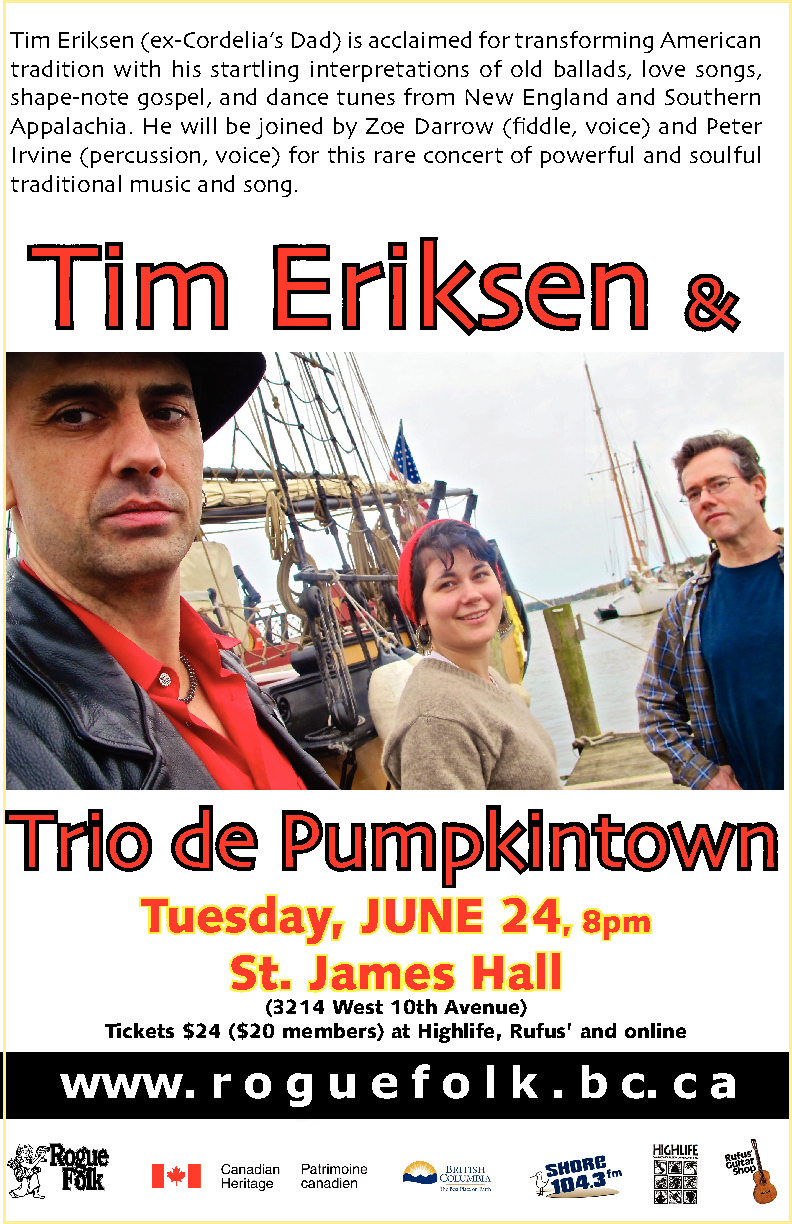 Tim Eriksen, The Trio de Pumpkintown @ St. James Community Hall Jun 24 2014 - Dec 21st @ St. James Community Hall