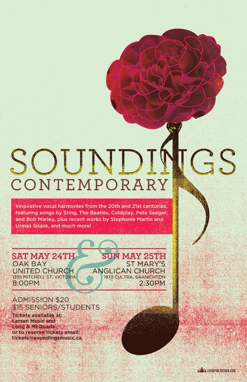 Soundings Vocal Ensemble presents a concert of vocal work from the 20th ans 21st centuries, featuring songs by Sting, The Beatles, Pete Seeger, and many more!