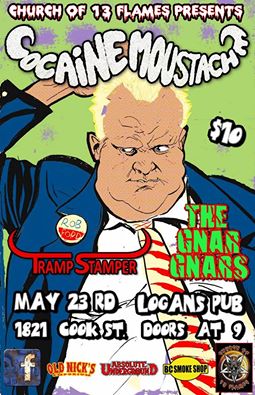 Better Clear your snouts it's.....: Cocaine Moustache (van), Tram Stasmper (edmonton), The Gnar Gnars @ Logan's Pub May 23 2014 - Feb 7th @ Logan's Pub