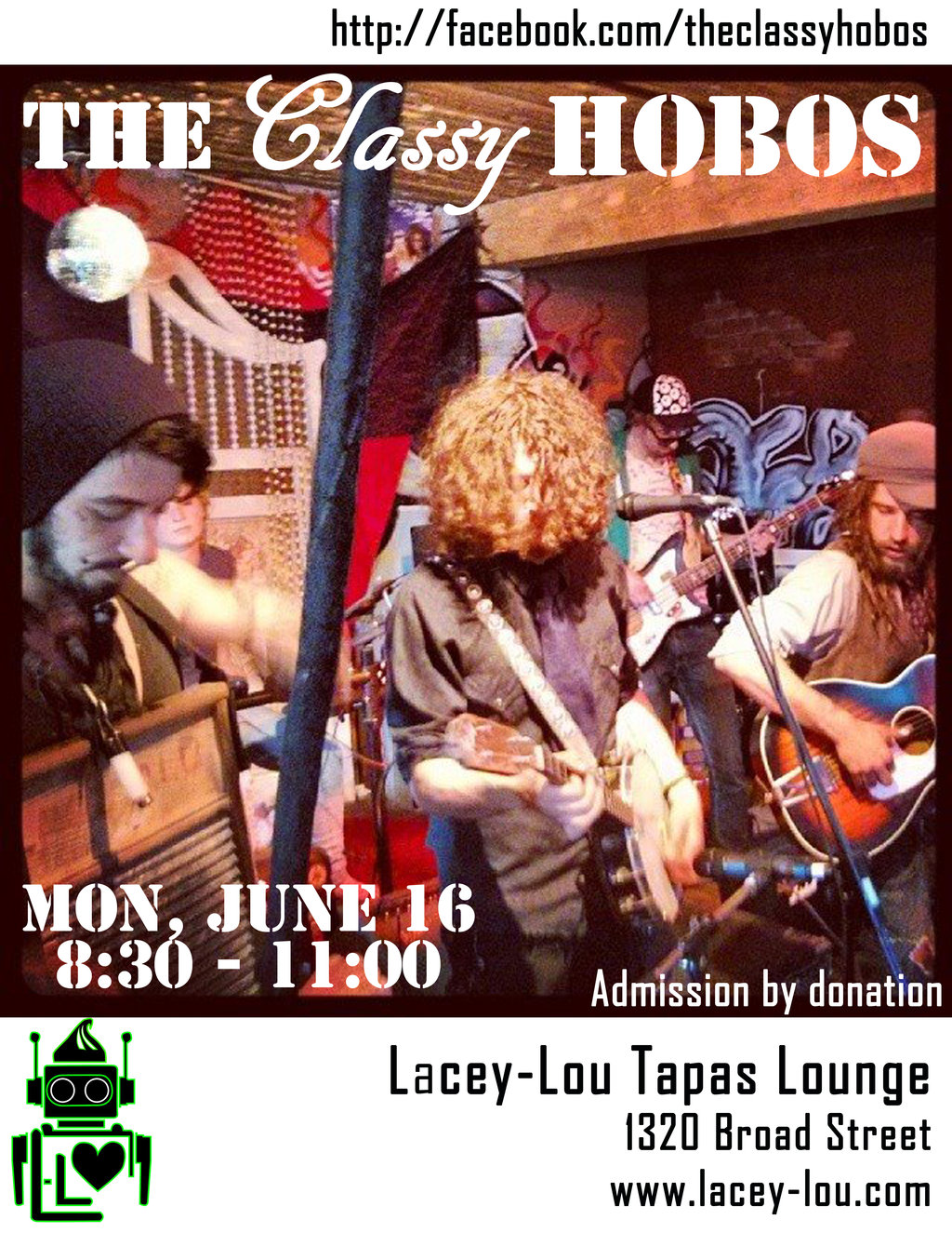 You got home bums, travelers, crusty train hoppers, and then you got the classy hobos. They're the ones out on the street, begging for change to pay for Netflix, drinking Perrier with their pinkies up and willing to wait out the shakes until they got enough for classy booze. Their leading man, Pedro, hails from Montreal and brings a fresh attitude to a fantastic street-grass / folk / blues / "old-time" / punk rock sound.