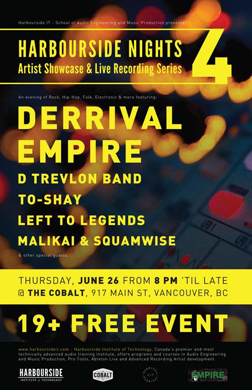 Harbourside Nights 4, Derrival , Empire, D Trevlon Band, To-Shay, Left to Legends, Malikai and Squamwise @ The Cobalt Jun 26 2014 - Feb 4th @ The Cobalt