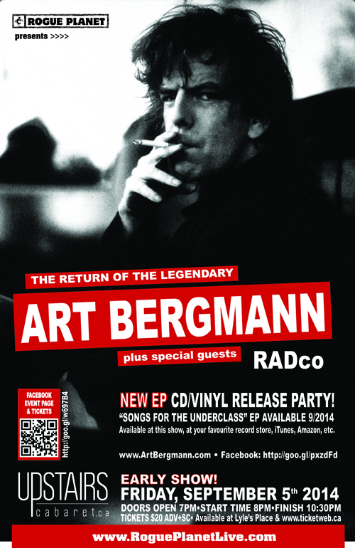 Legendary Canadian Punk/Rock icon ART BERGMANN Record Release Party.: Art Bergmann, RADCO @ The Upstairs Cabaret Sep 5 2014 - Feb 5th @ The Upstairs Cabaret