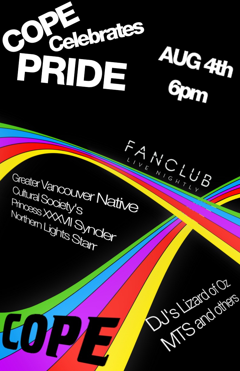 COPE Pride Fundraiser @ Vancouver FanClub Aug 4 2014 - Dec 21st @ Vancouver FanClub