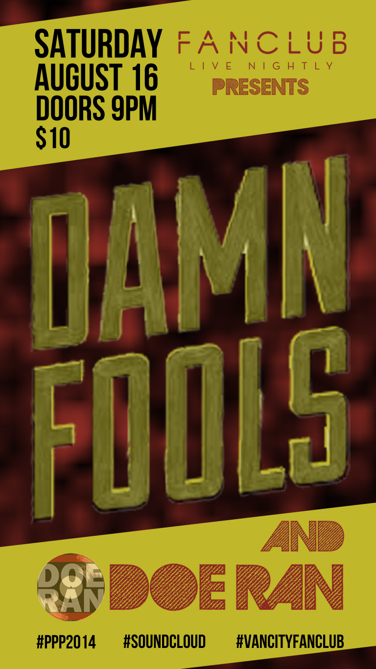 Damn Fools w/ Doe Ran @ Vancouver FanClub Aug 16 2014 - Dec 21st @ Vancouver FanClub