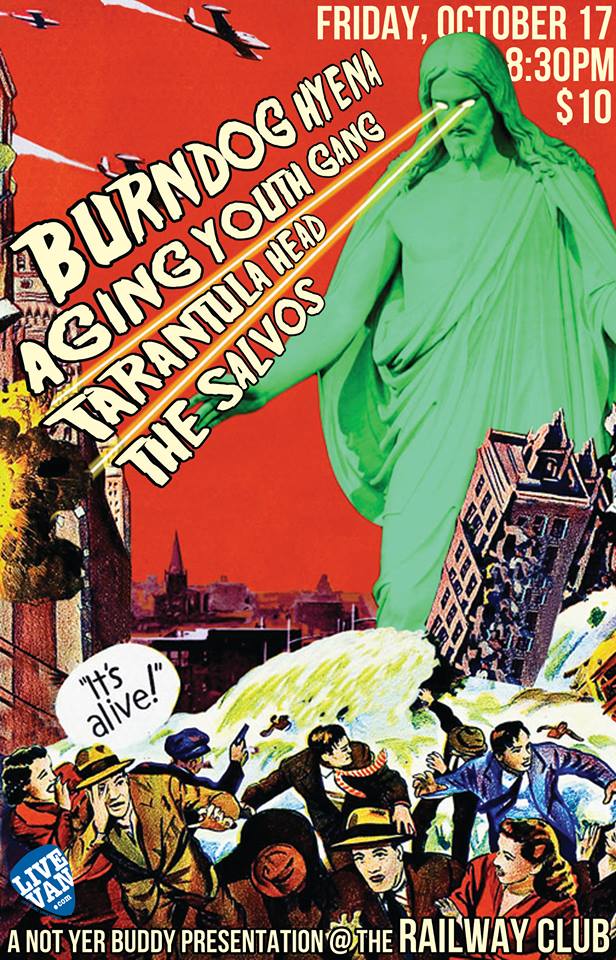 after nearly 30 yrs Prince George's prog/punk powerhouse Burndog Hyena are putting their boots back on, re-stringing the guitars, tightening up the skins and are riding down to Vancouver for one magnificent night of mayhem at the Railway Club! with special guests the mighty AGING YOUTH GANG, Tarantula Head and The Salvos ... this will be awesome!