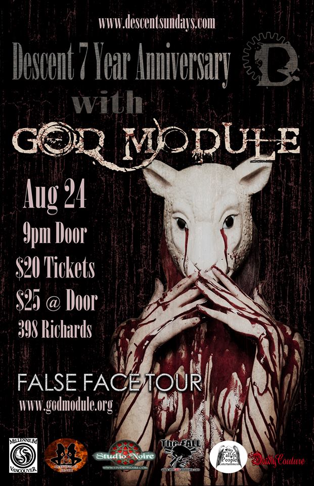 That's right, it's that time of year again already. Yeah it's been a year already. Lucky number 7, wow, time flies. So this year to celebrate we are bringing GODMODULE as part of their current False Face tour(http://jasyn9.wix.com/god-module).So come out and celebrate our Anniversary in style this year. Pre-Sale tickets for $20, $25 at the door.
