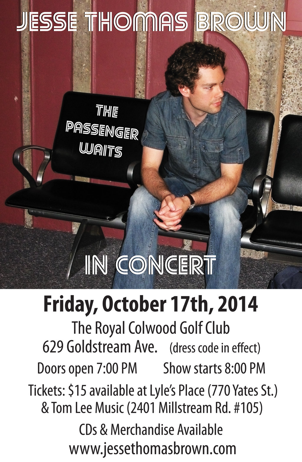 Jesse Thomas Brown "The Passenger Waits" Concert: Jesse Thomas Brown @ Royal Colwood Golf Club Oct 17 2014 - Jan 12th @ Royal Colwood Golf Club