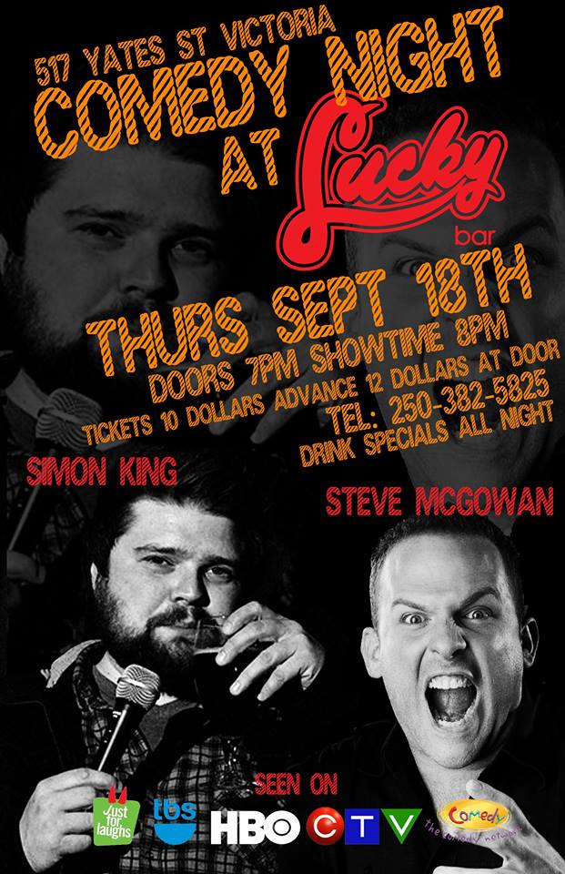 Lucky Bar Presents: Comedy Night!! Get Lucky with Steve McGowan and Simon King on Thursday September 18th, 2014