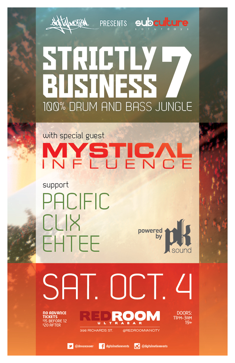Come and enjoy the sounds of some of the best local selectors from the Vancouver sector alongside a true Canadian DnB Pioneer / Legend.