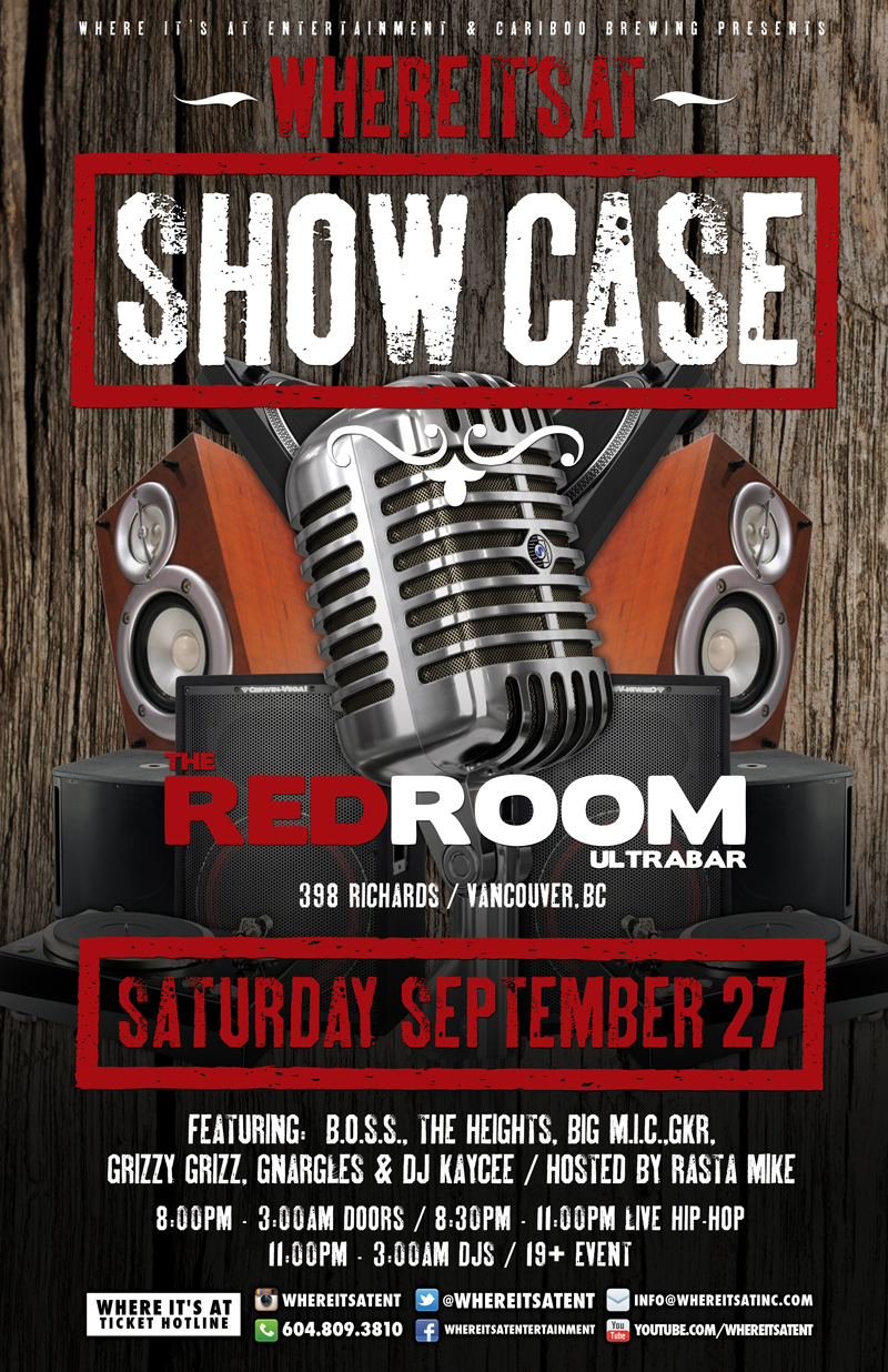 WHERE ITS AT - SHOW CASE: B.O.S.S, THE HEIGHTS, BIG M.I.C, GKR, Clay Haynes, GRIZZY GRIZZ, DJ KAYCEE , hosted by RASTA MIKE @ The Red Room Sep 27 2014 - Dec 24th @ The Red Room
