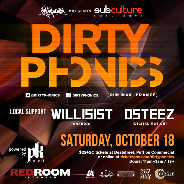 SUBculture SATURDAYS - EVERY SATURDAY NIGHT AT THE RED ROOM - POWERED BY VANCOUVER'S FIRST AND ONLY PK SOUND INSTALLATION.