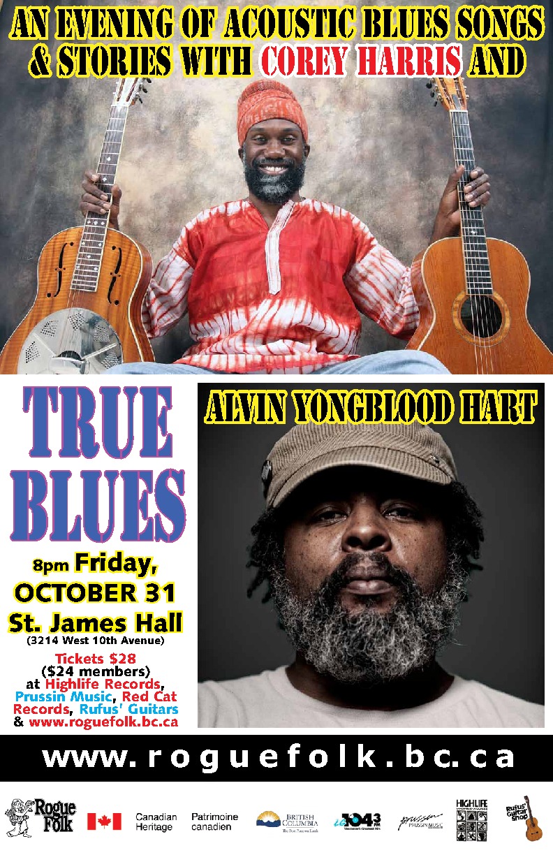 True Blues ft: Corey Harris, Alvin Youngblood Hart @ St. James Community Hall Oct 31 2014 - Dec 22nd @ St. James Community Hall
