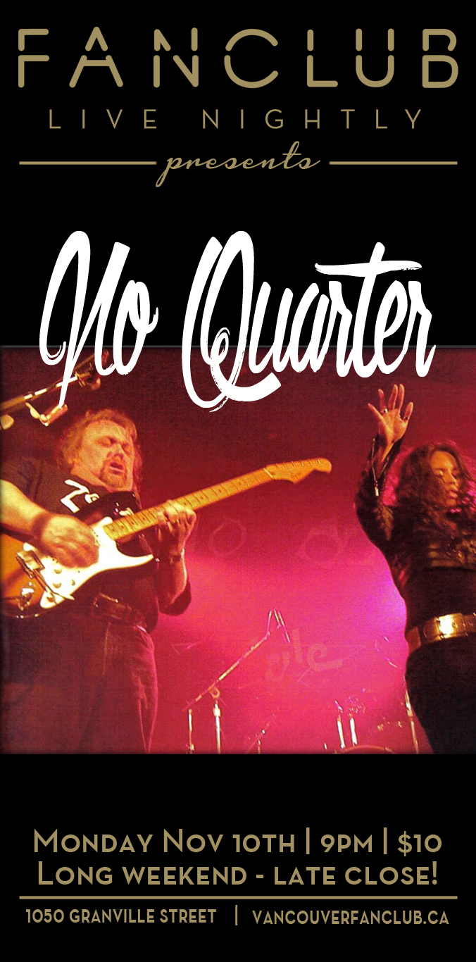 No Quarter featuring Alita Dupray, Rob Montgomery, David Barton and Johnny "Boogie" Seguin has rocked the Premier Vancouver Club Scene for over 6 years! Their interpretation of the British Rock/Blues Songbook with extra emphasis on Led Zeppelin ruled the Vancouver 2010 Olympics, and continues to this very date!
