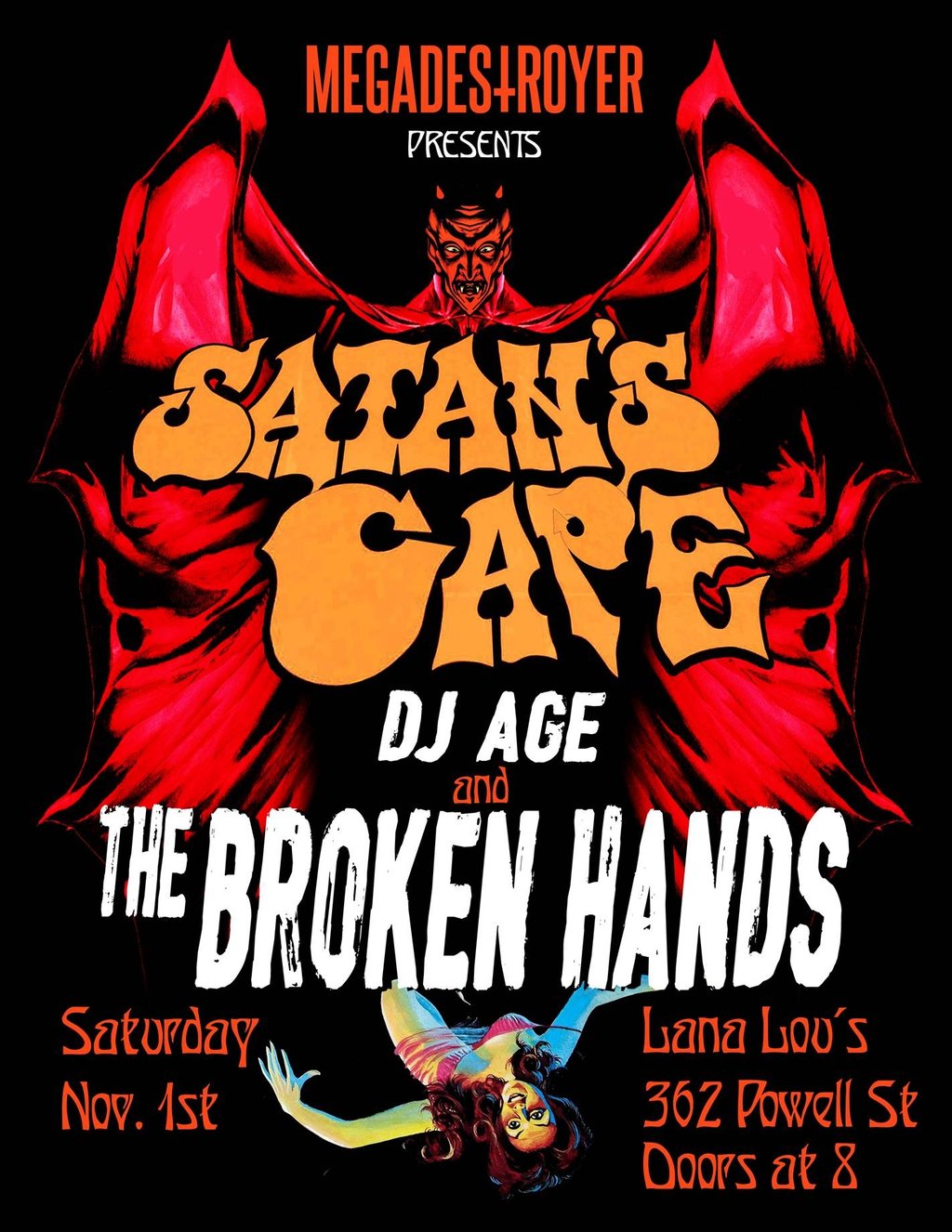Satan's Cape, The Broken Hands, DJ AGE @ LanaLou's Nov 1 2014 - Feb 7th @ LanaLou's
