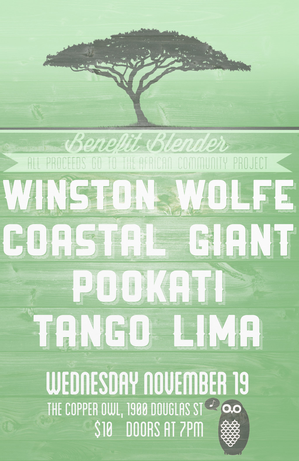 Winston Wolfe, Coastal Giant, Pookati, Tango Lima @ Copper Owl Nov 19 2014 - Feb 7th @ Copper Owl
