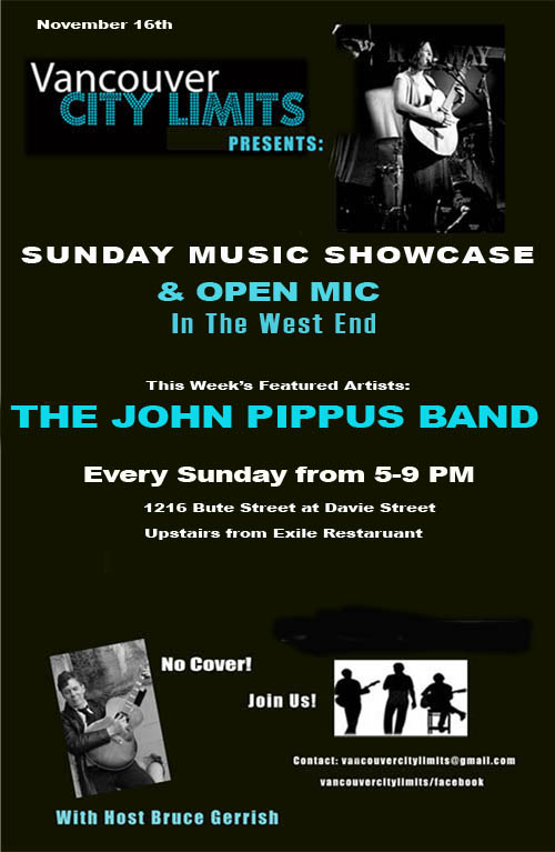 Vancouver City Limits Showcase hosts a cool Sunday Music Showcase in a cool new venue in the West End.1216 Bute Street. Join us every Sunday between 5-9PM. We are running an open mic and presenting fantastic featured performers each week. Please contact us if you are interested in performing.