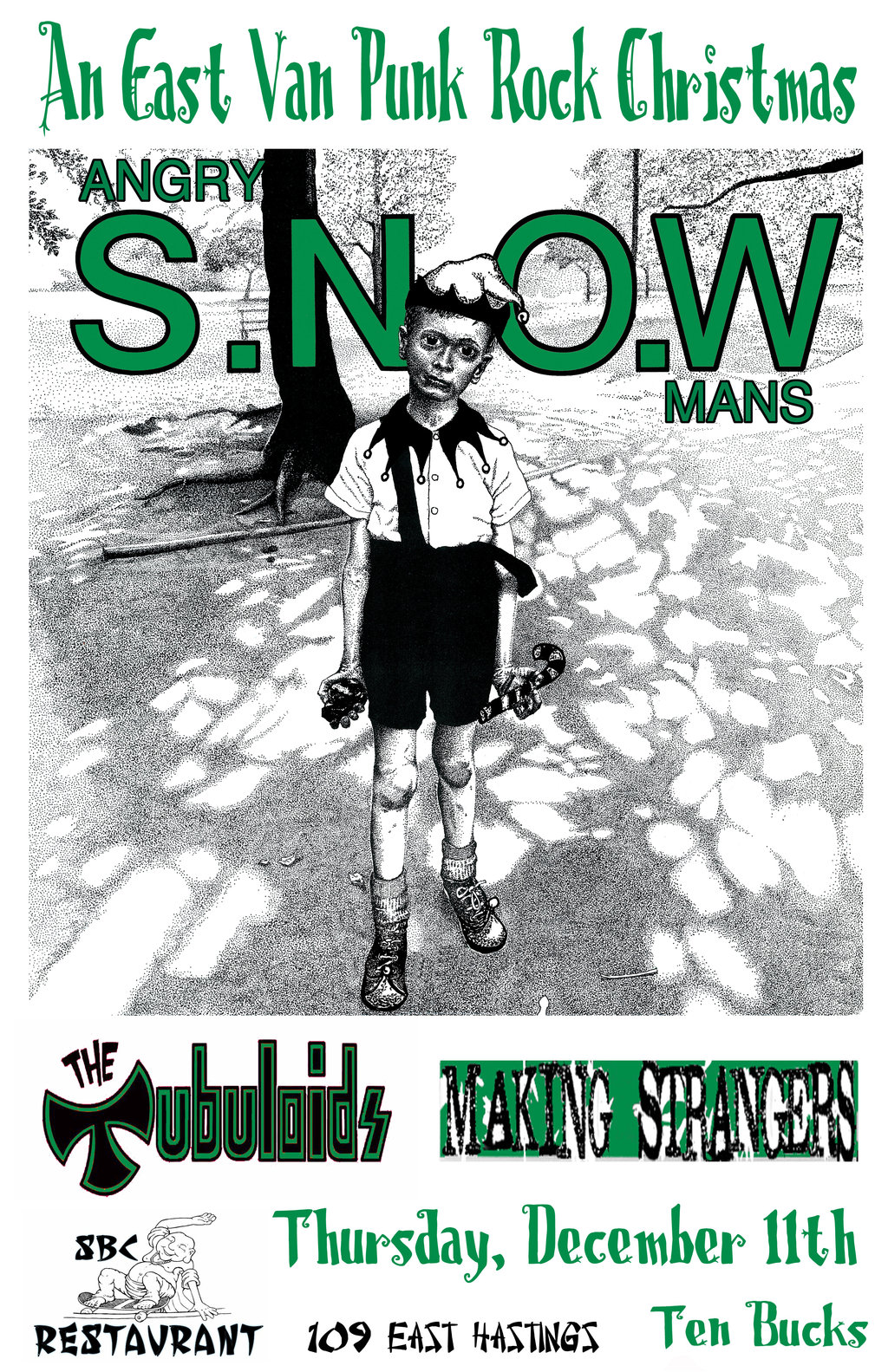 Angry Snowmans (Punk Xmas Covers) sleighing over from Victoria Bells and all....Tubuloids surfing the wave of awesome local boys killing it. Making Strangers are here to kill it to!!!!!