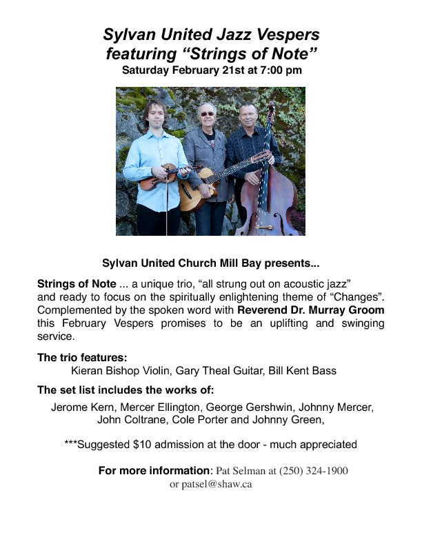 Sat. February 21st 2015 Sylvan United Church Jazz Vespers Mill Bay BC Free