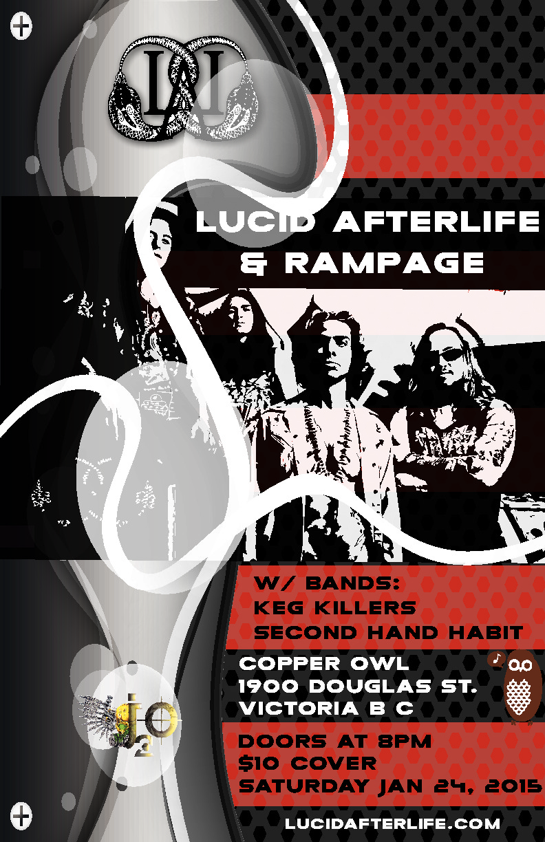 Lucid Afterlife incorporates so many different genres they are almost a genre of there own. They are heavy at times but mellow when it’s needed. With there singers deep penetrating vocals it always raises hairs when they switch to a freestye rap jam it, blows away crowds when they find out the whole song was spur of the moment.