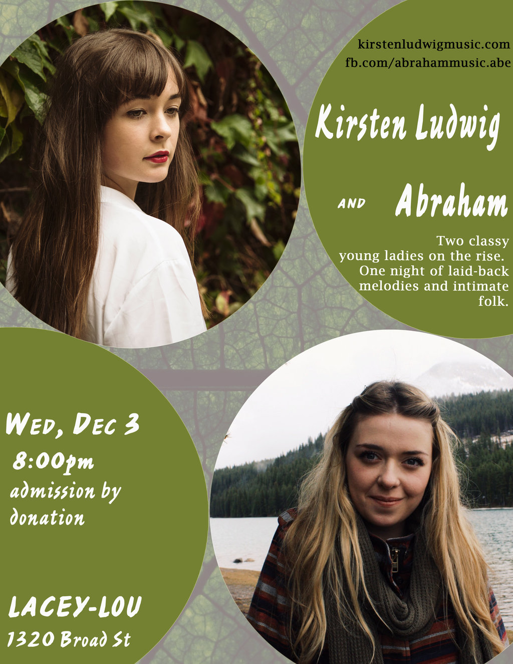 Two Classy Young Ladies on the Rise: Abraham, Kirsten Ludwig @ Lacey-Lou Tapas Lounge Dec 3 2014 - Dec 22nd @ Lacey-Lou Tapas Lounge