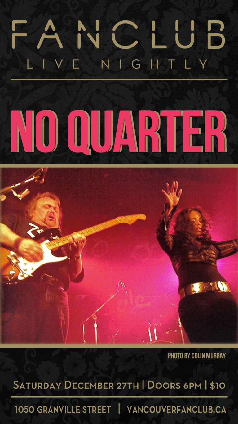 No Quarter featuring Alita Dupray, Rob Montgomery, David Barton and Johnny "Boogie" Seguin has rocked the Premier Vancouver Club Scene for over 6 years! Their interpretation of the British Rock/Blues Songbook with extra emphasis on Led Zeppelin ruled the Vancouver 2010 Olympics, and continues to this very date!